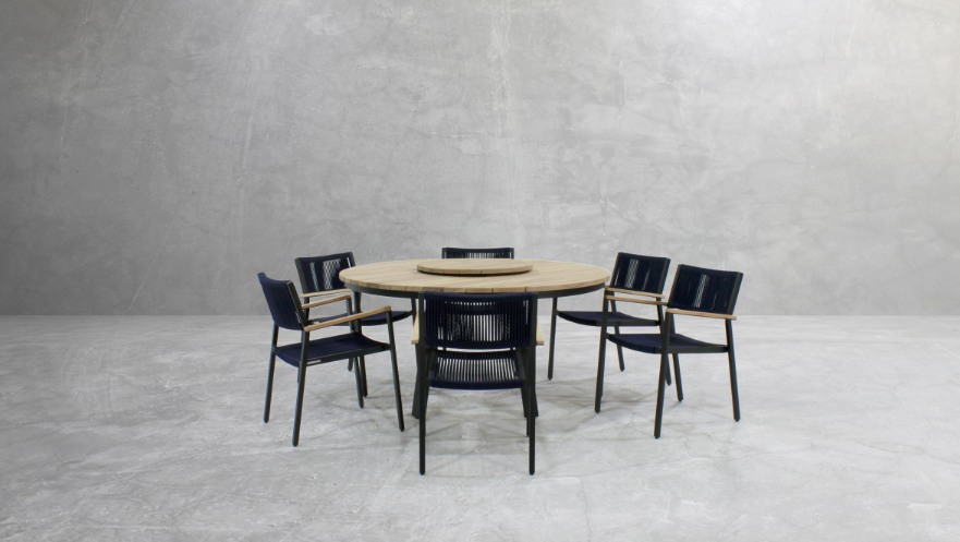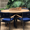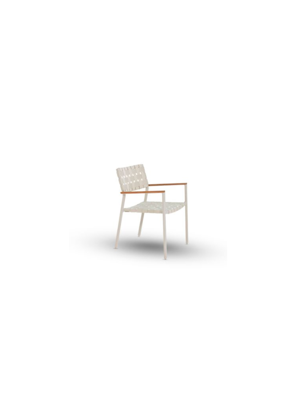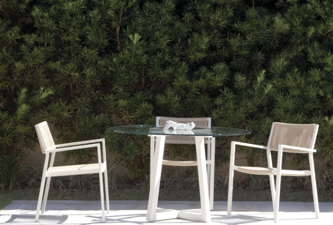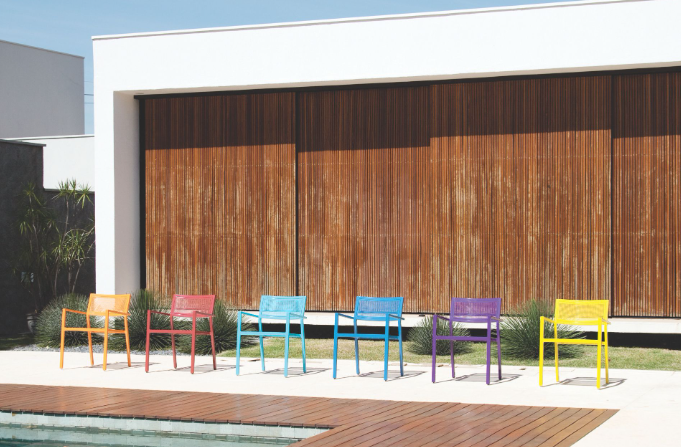 Assento e Encosto em corda eliada ou tramada em percinta ou Assento e Encosto todo em alumínio pintado.